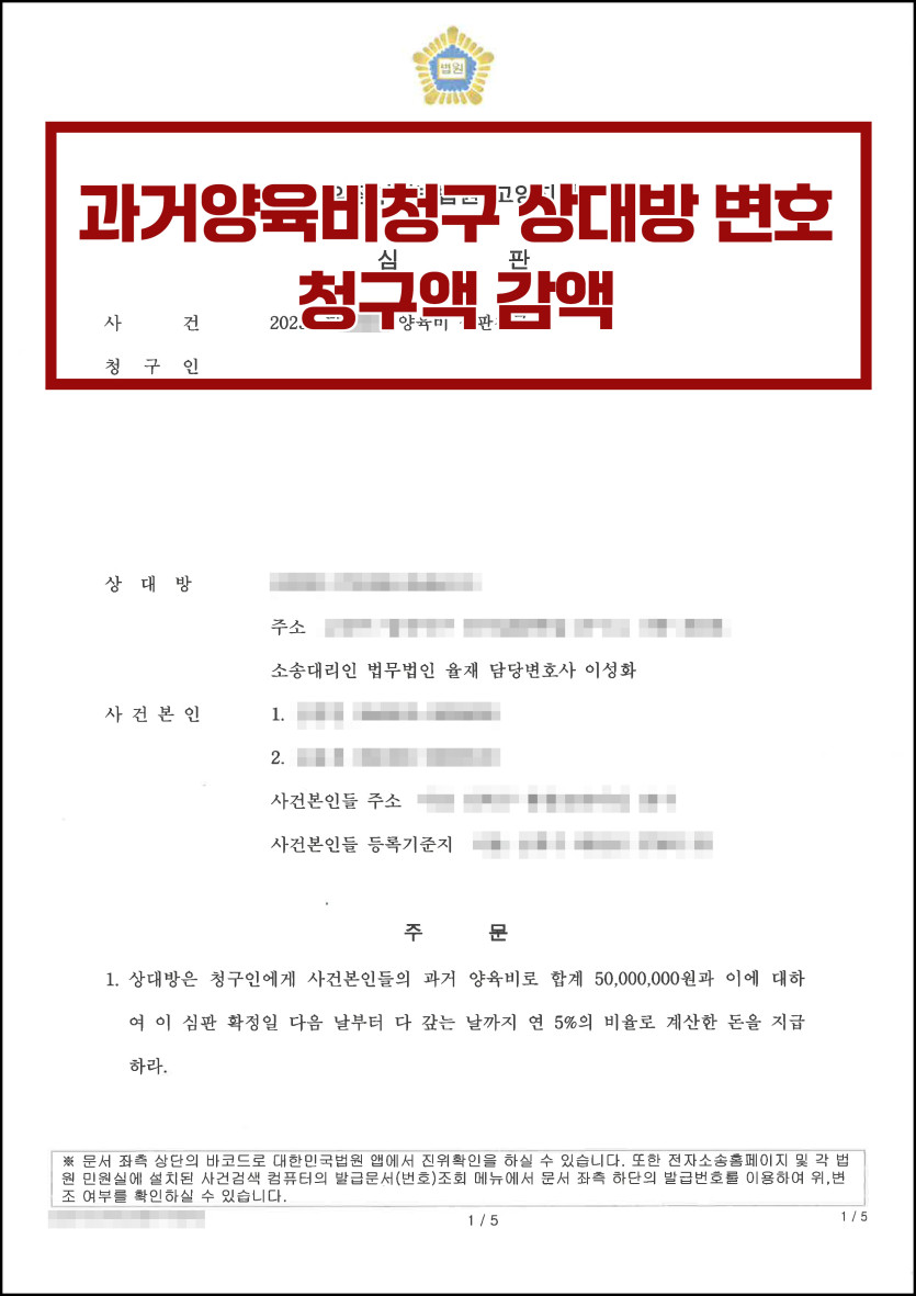 [과거양육비청구 상대방 변호] 청구인 측 청구액 감액으로 방어한 사례
