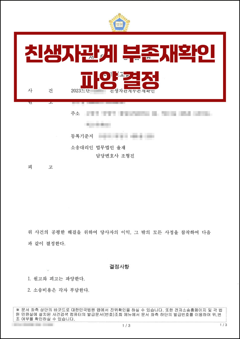 친생자관계 부존재로 파양이 선고되었습니다.