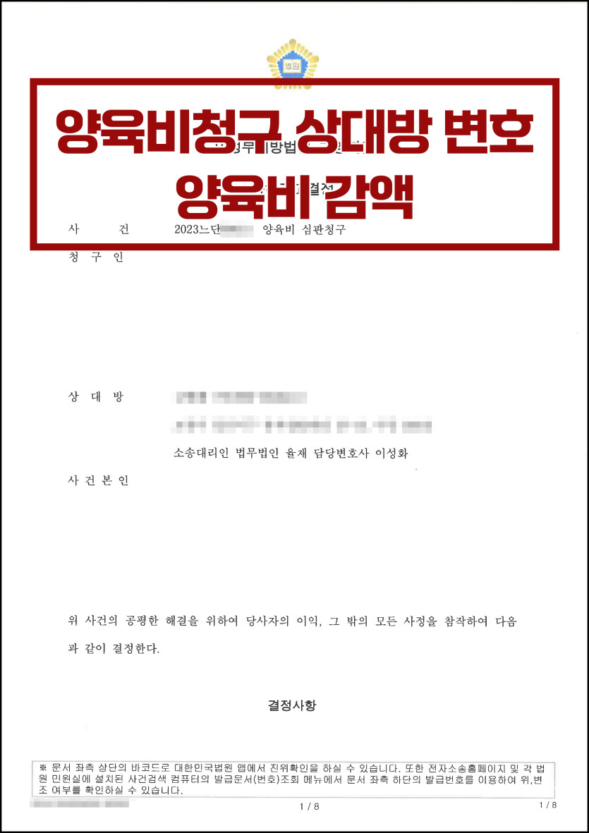 [과거 양육비 청구 피고 변호] 청구액 감액 사례
