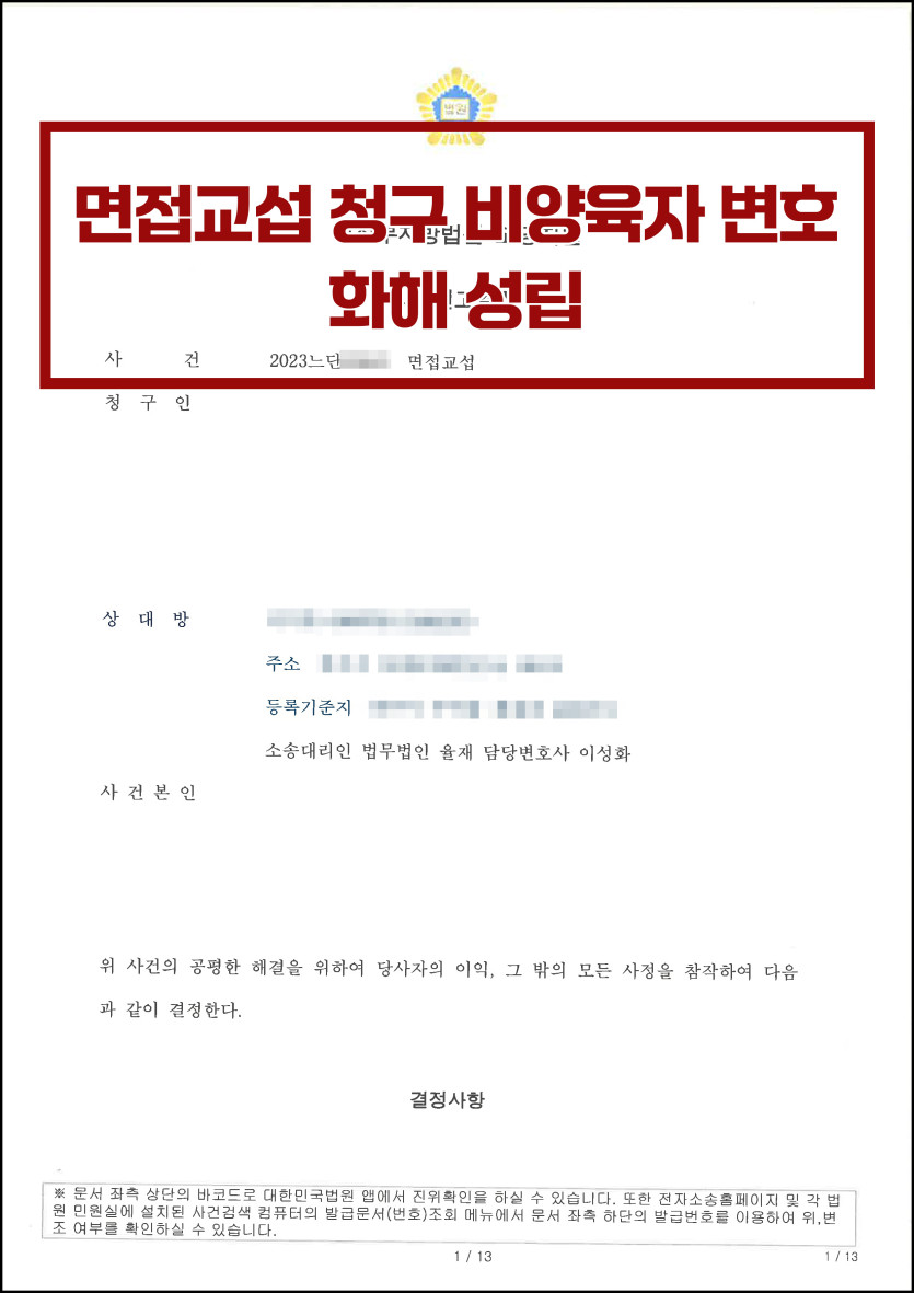 [면접교섭청구 상대방(비양육자) 변호] 자녀의 면접교섭 청구 합의 사례