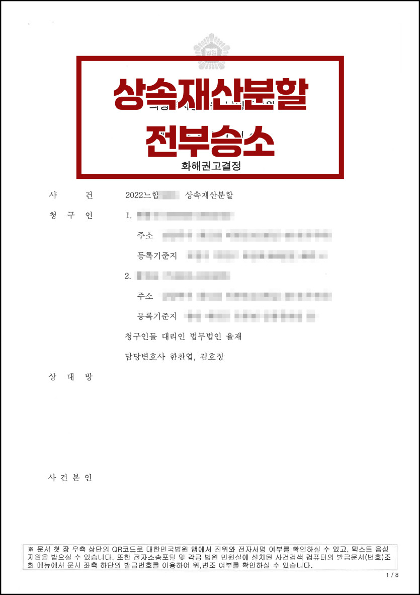 4:4:2로 의뢰인들의 특별 상속 기여도를 인정받았습니다.