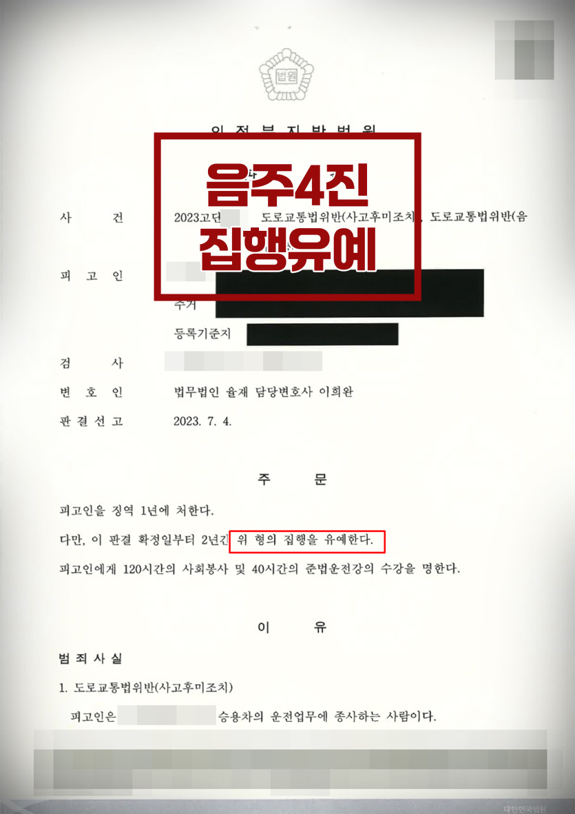 [음주운전] 대물 뺑소니ㅣ4진아웃-집행유예 방어