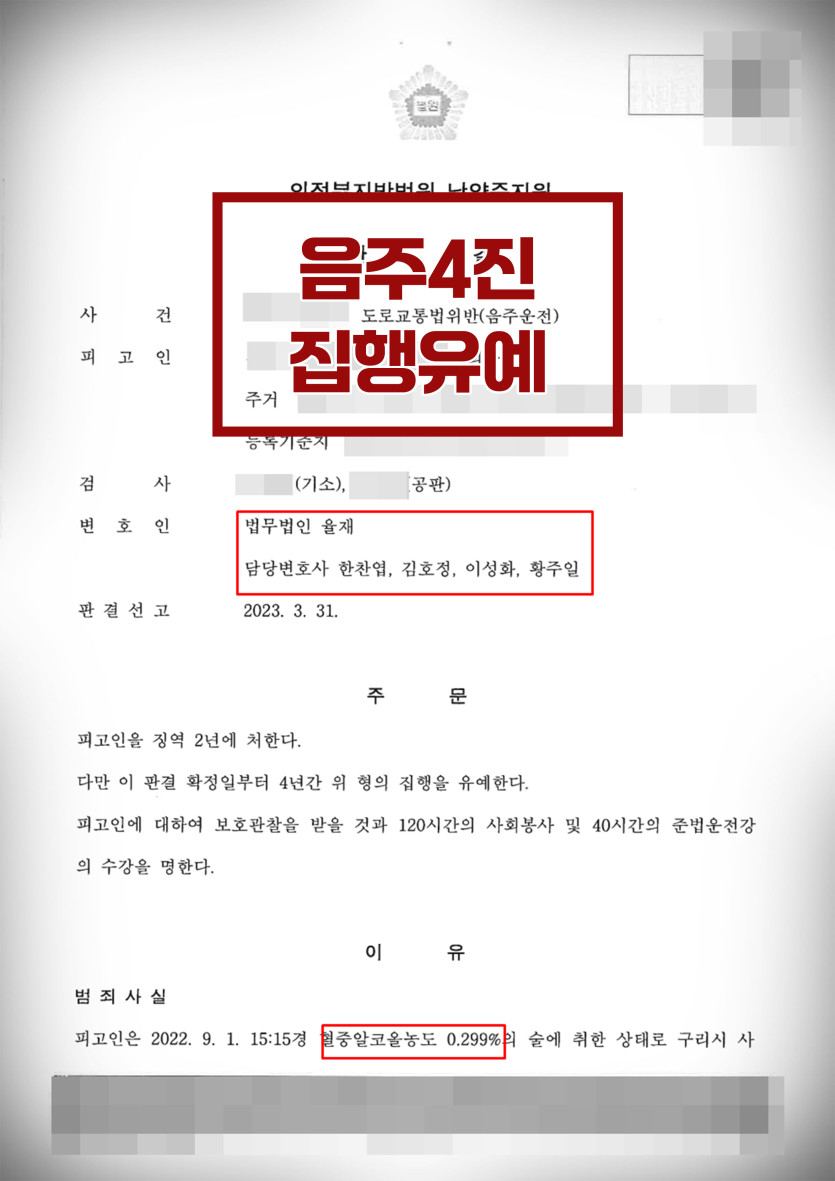 [음주운전 4진아웃] 음주 4진아웃ㅣ집행유예 방어