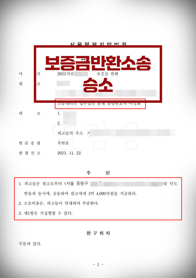 [보증금반환소송]무변론 3억4천만 원 지급 승소