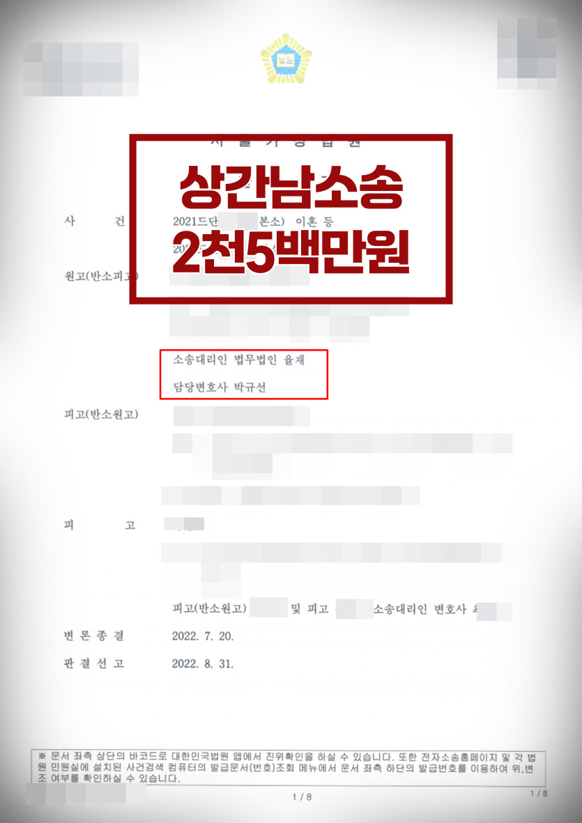 [이혼ㅣ상간남소송]이혼·위자료 2천5백만 원 승소