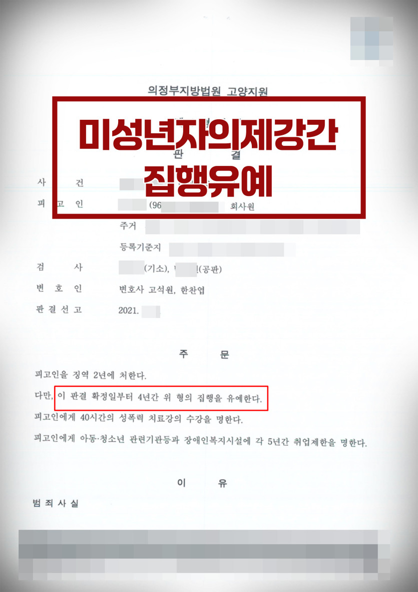 저희 율재는 본 사건을 맡으면서 중형을 피할 수 없다는 사실에 기반하여 집행유예 및 신상 정보 공개를 막겠다는 전략을 수립하였습니다.