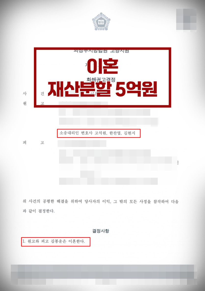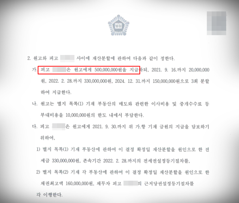 [이혼ㅣ재산분할]재산분할 5억 원 인정