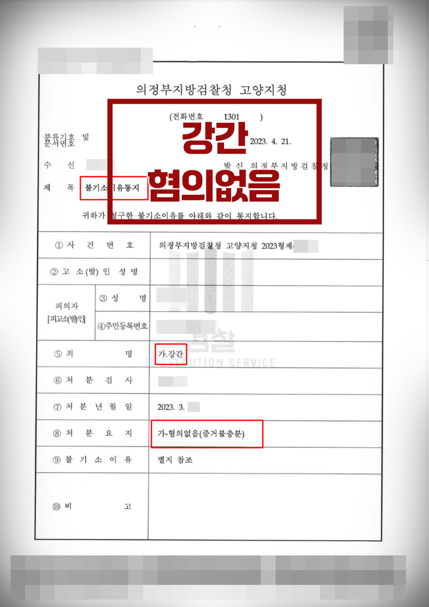 [강간ㅣ꽃뱀 사기] 검찰 단계 무혐의로 방어
