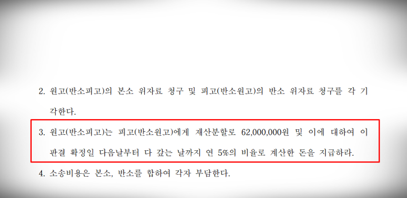 위에 첨부한 법원 판결문을 보시고 의아하게 생각하시는 분들이 있을 것입니다. 재산분할 기여도를 50% 인정받았는데 오히려 배우자에게 돈을 지급하라고 하기 때문입니다.