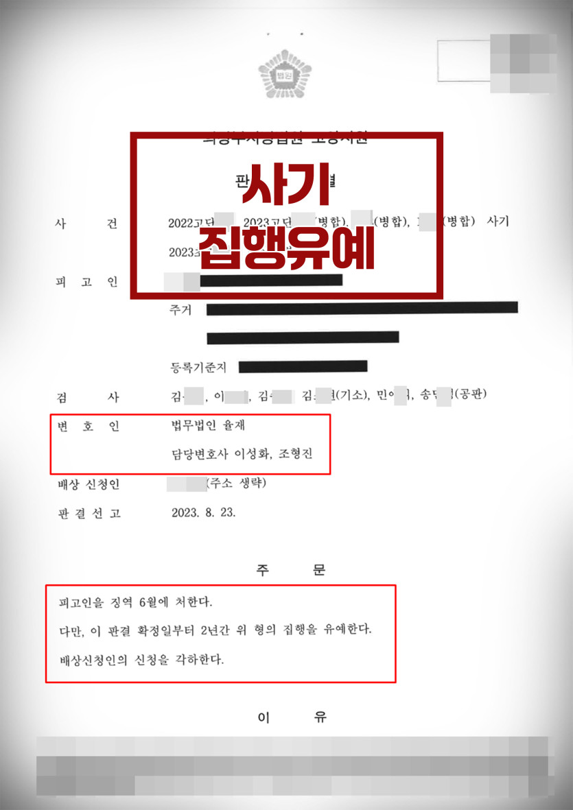 이후 피해자들의 형사 고소로 경찰 수사가 시작되었고 의뢰인께선 구속되어 형사재판을 받아야 하는 상황에 놓였는데요. 이에 의뢰인의 가족이 저희 율재를 찾아주셨습니다.