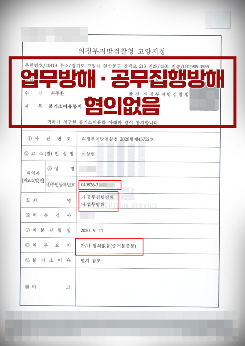 [업무방해ㅣ공무집행방해]15세 소년 범죄 사건 혐의없음으로 방어