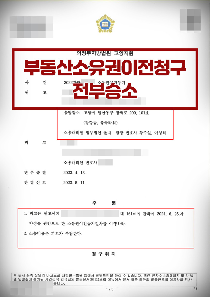 [부동산소유권이전청구소송] 전부 승소한 사례