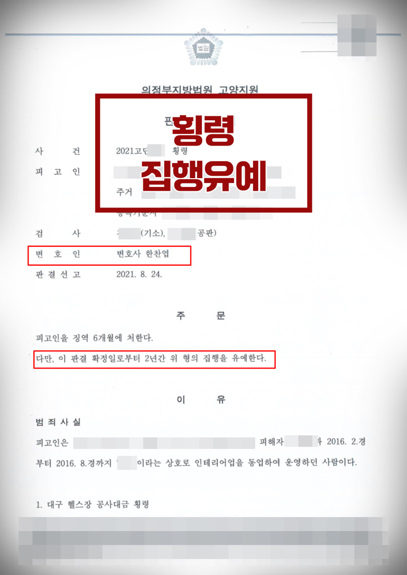 다행히 피해자와 원만한 합의 및 집행유예로 사건이 마무리되면서 의뢰인의 계속적인 경제 활동에 아무런 문제가 되지 않아 다행이었던 사건입니다.