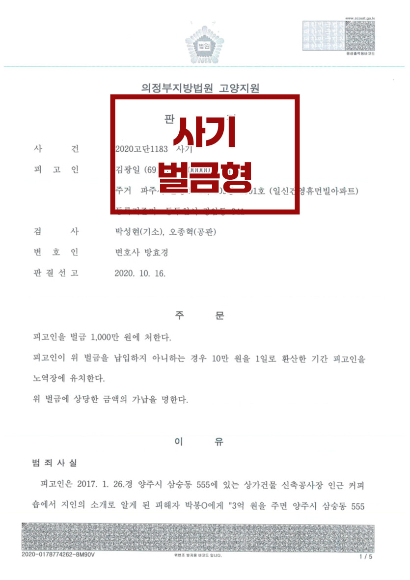 본 사건 의뢰인께선 지인을 통해 알게 된 피해자에게 '3억원을 주면 양주시 모 토지에 신축하는 상가건물 건축 공사를 하게 해주겠다'고 속여 피해자로부터 공사 가계약금 명목으로 1천만원의 금원을 편취한 혐의로 정식 기소되었습니다.