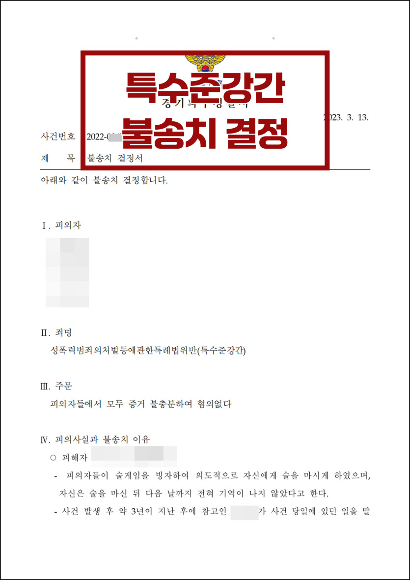 [특수준강간] 경찰 단계 '불송치 결정'으로 방어한 사례