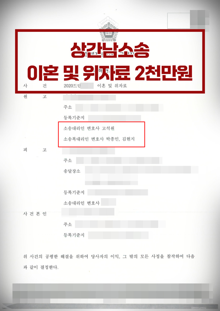 [이혼 및 외도 위자료 청구] 화해 권고를 통한 신속 해결 사례