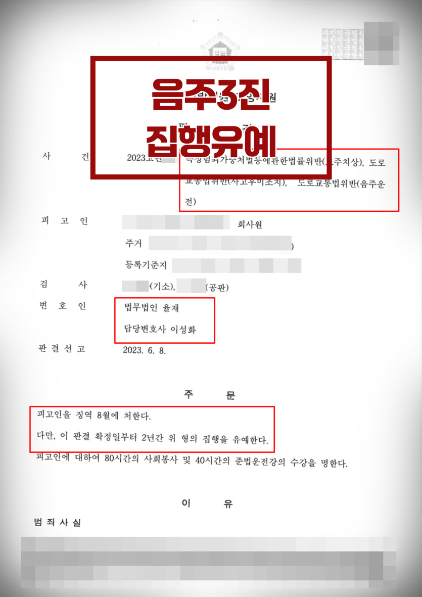 [음주운전3진아웃ㅣ뺑소니] 집행유예로 방어한 사례
