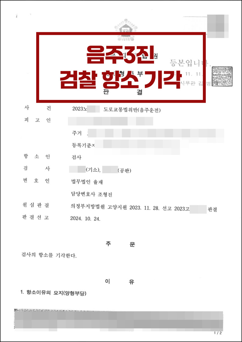 [음주3진 검찰 항소] 검찰 항소 기각으로 방어한 사례