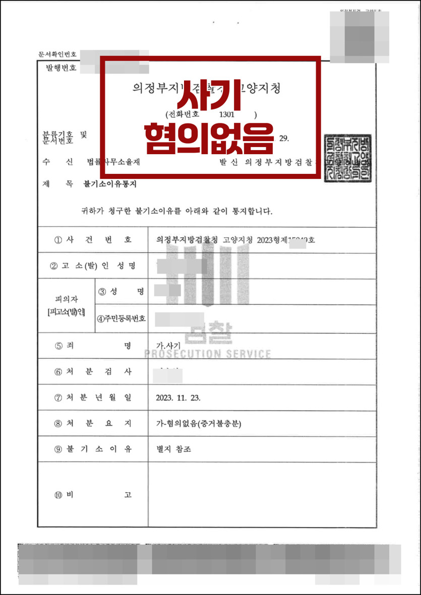 [사기] 검찰 단계 '혐의없음'으로 방어한 사례