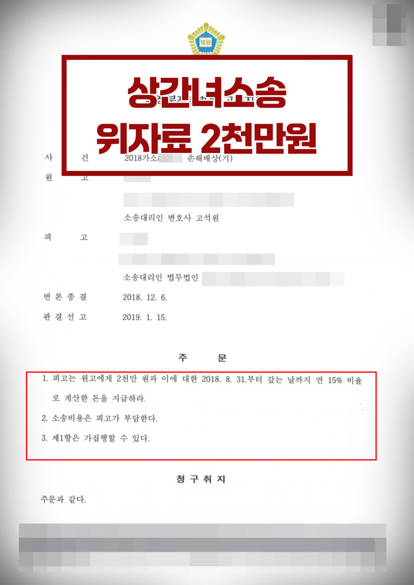 [상간녀소송] 배우자와 별개로 위자료 2천만원 인정한 사례
