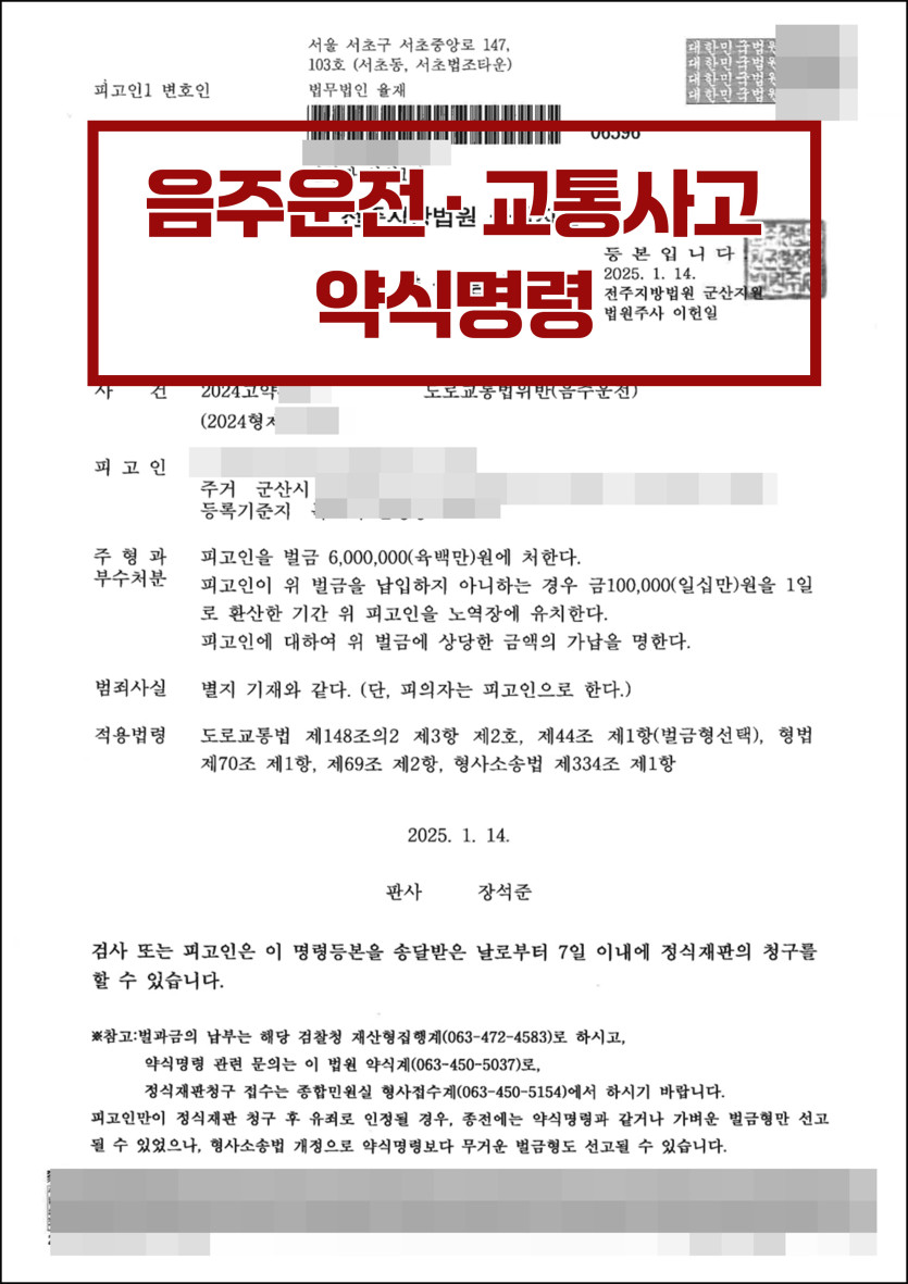 [음주운전·위험운전치상] 공기업 재직 의뢰인 인사사고 접수 없이 약식명령으로 방어한 사례