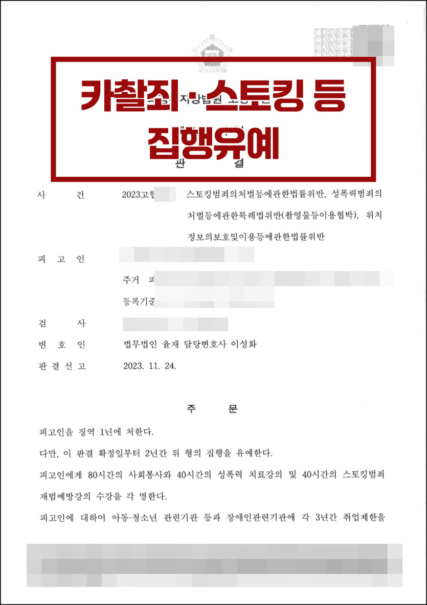 [스토킹·카촬죄·위치정보보호법 위반] 전 여친 상대로 스토킹, 카촬죄, 위치추적 집행유예 방어