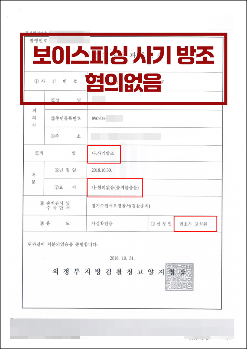 [보이스피싱ㅣ사기방조] 검찰 단계 혐의 없음으로 방어한 사례