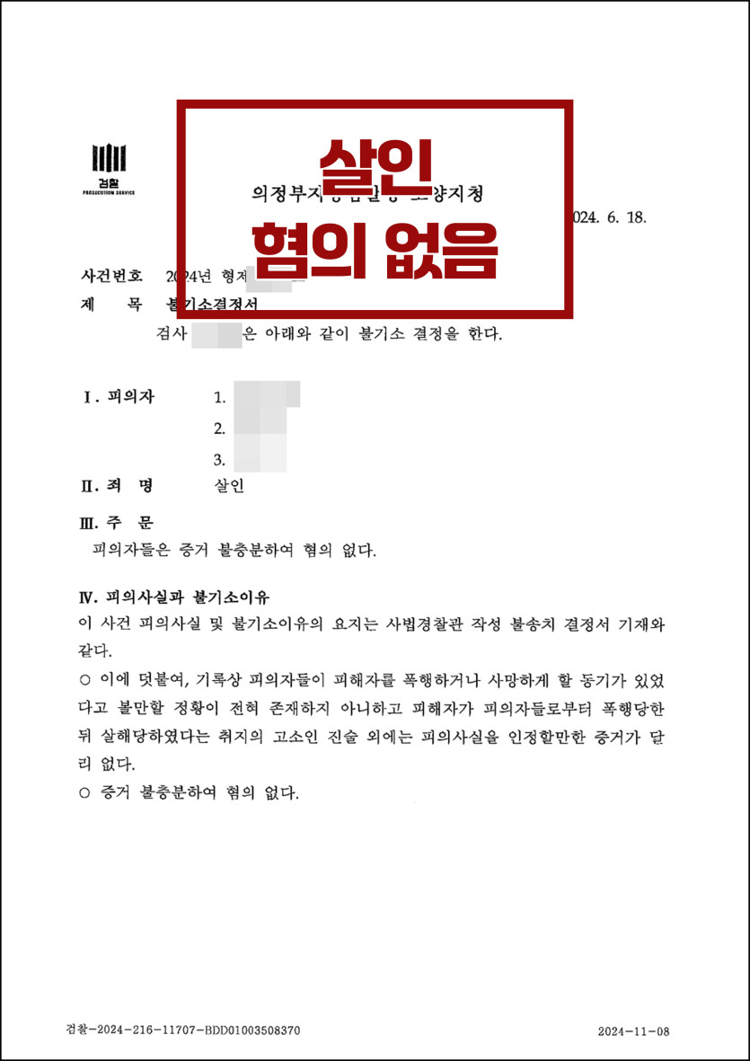 [살인] 검찰 단계 '혐의없음'으로 방어한 사례