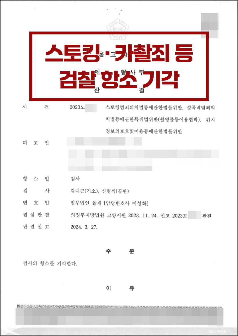 [스토킹·카촬죄 등 검찰 항소심] 검찰 항소 기각으로 방어한 사례