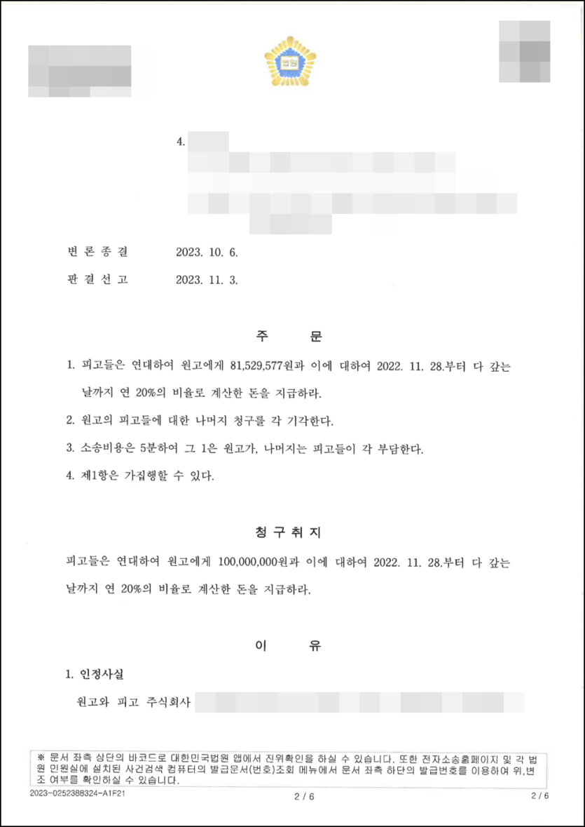 [대여금청구소송] 전부 승소로 마무리한 사례