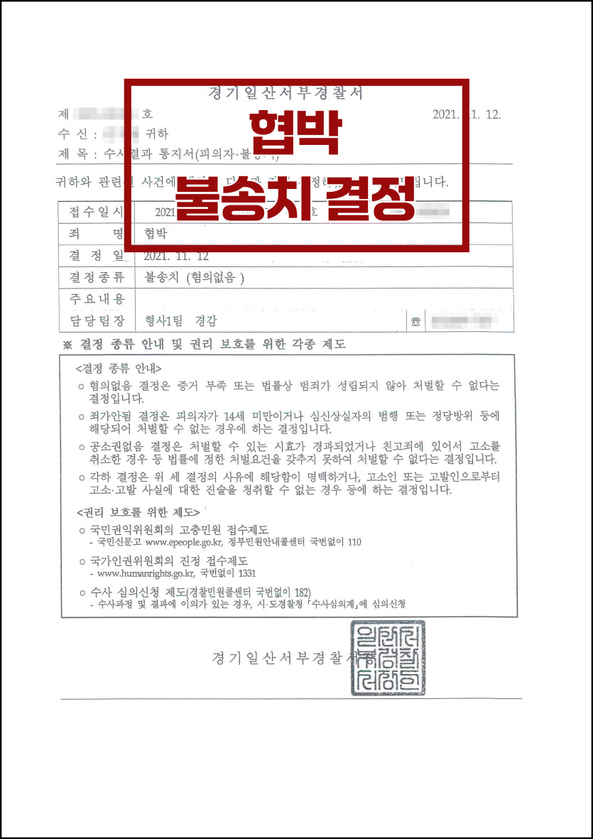 [협박죄 피의자 변호] 경찰 단계 '불송치 결정'으로 방어한 사례