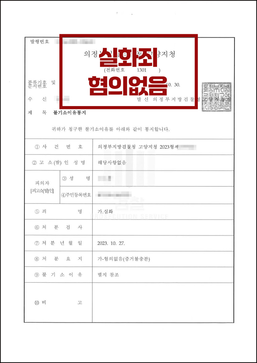 검찰 단계 '혐의없음'으로 방어하였습니다.
