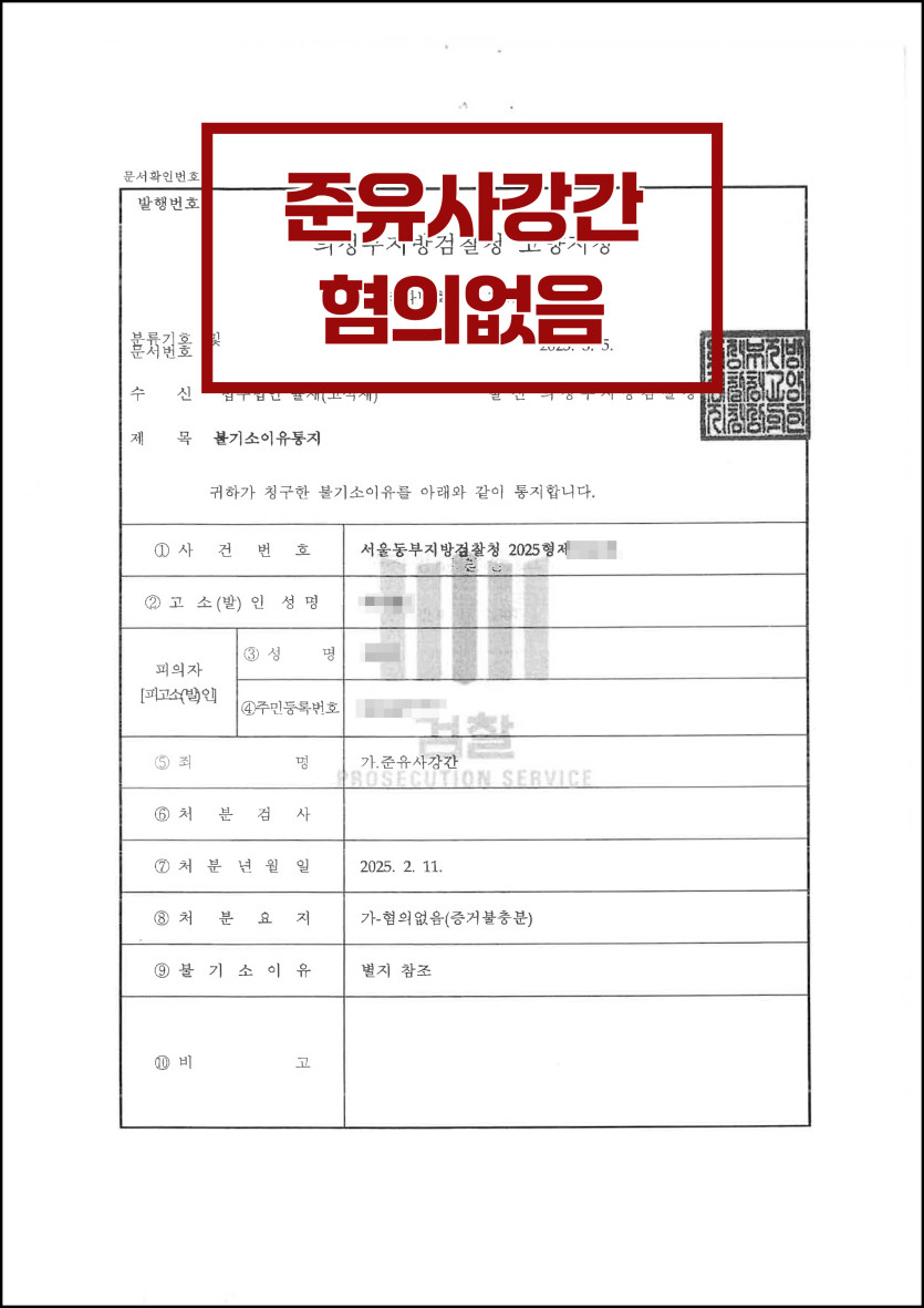[준유사강간] 검찰 단계 '혐의없음'으로 방어한 사례