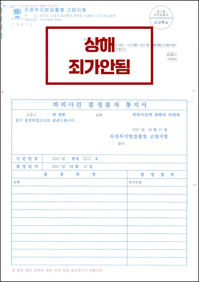 죄가안됨은 정당방위 등을 매우 엄격하게 판단하는 우리나라 법 체계에서 매우 드물에 인정되는 처분이라고 할 수 있습니다. 대부분 증거 불충분으로 인한 '혐의없음'이 수사기관에서 가장 많이 내리는 처분이라는 점이 이를 뒷받침하죠.