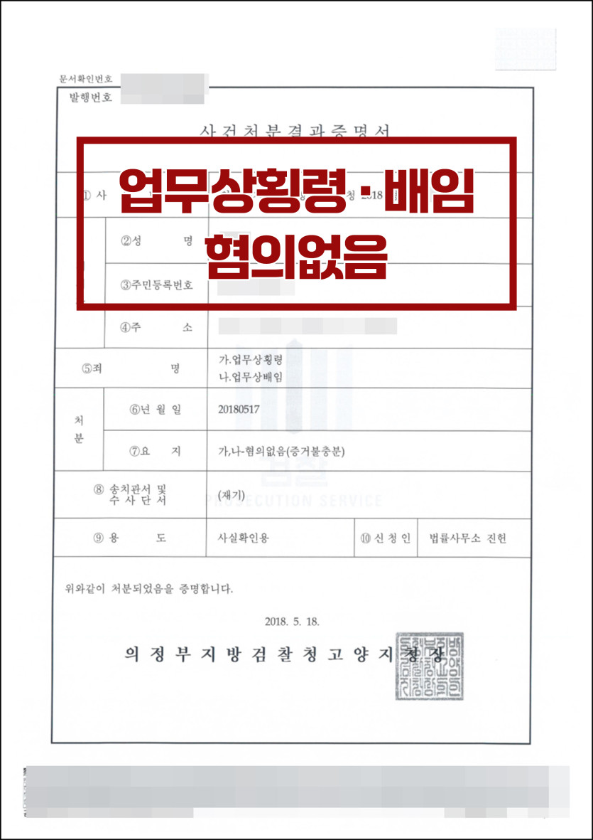 [업무상횡령·배임] 검찰 단계 혐의없음으로 방어한 사례