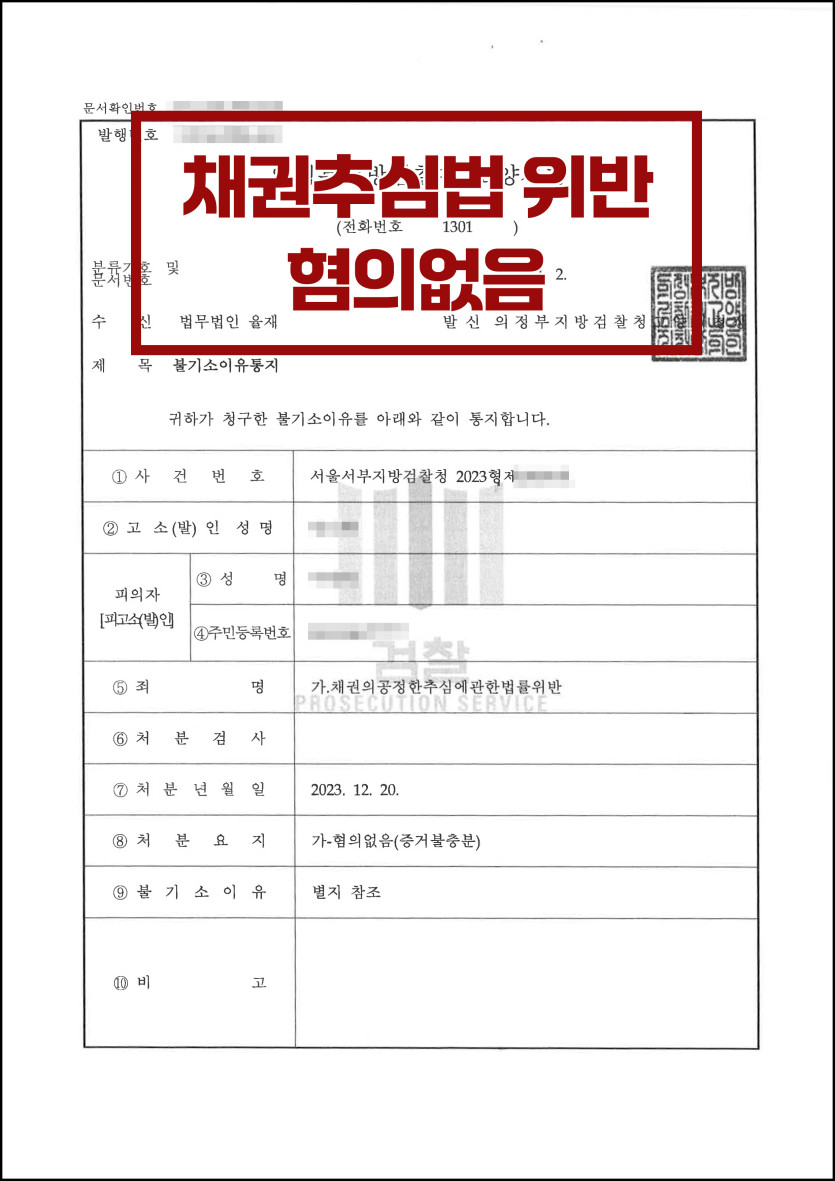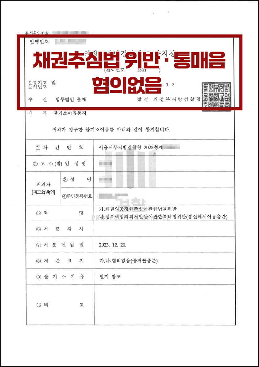 [통매음·채권추심법 위반] 검찰 단계 '혐의없음'으로 방어한 사례