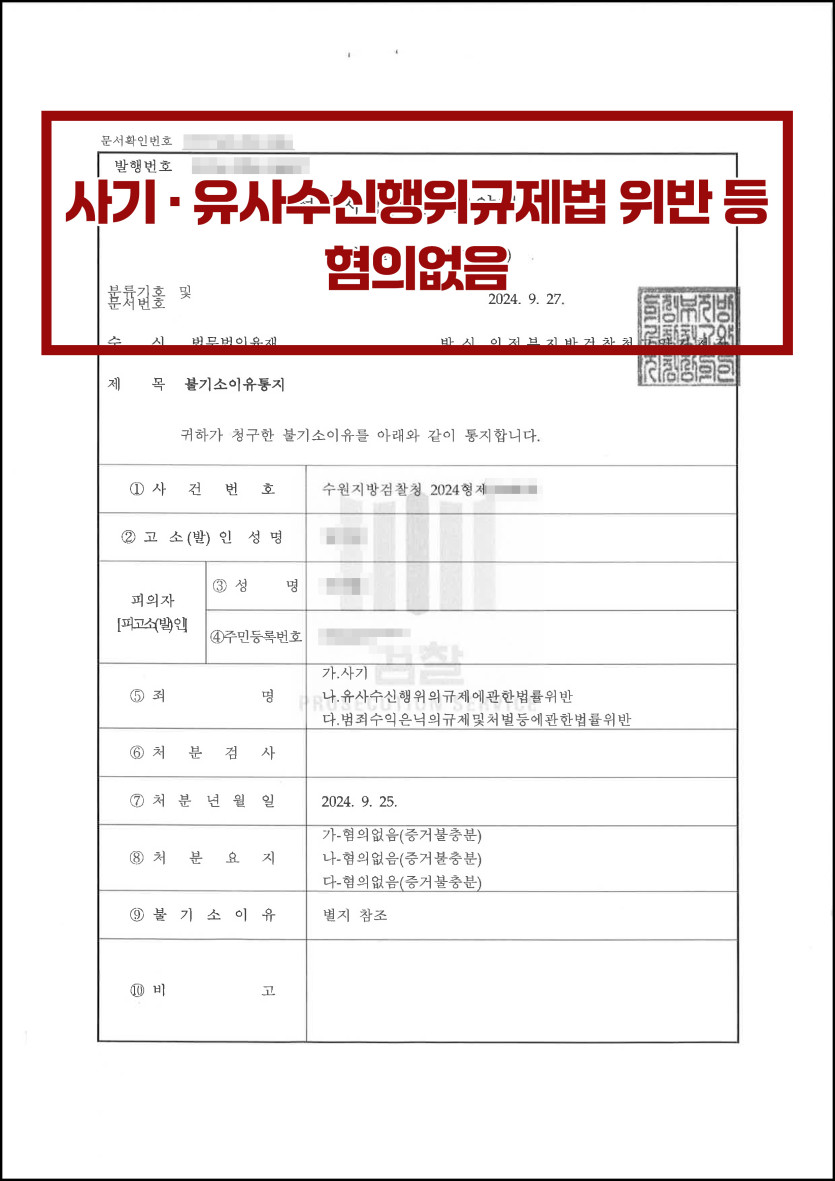 [사기·유사수신행위·범죄수익은닉] 검찰 단계 '혐의없음'으로 방어한 사례