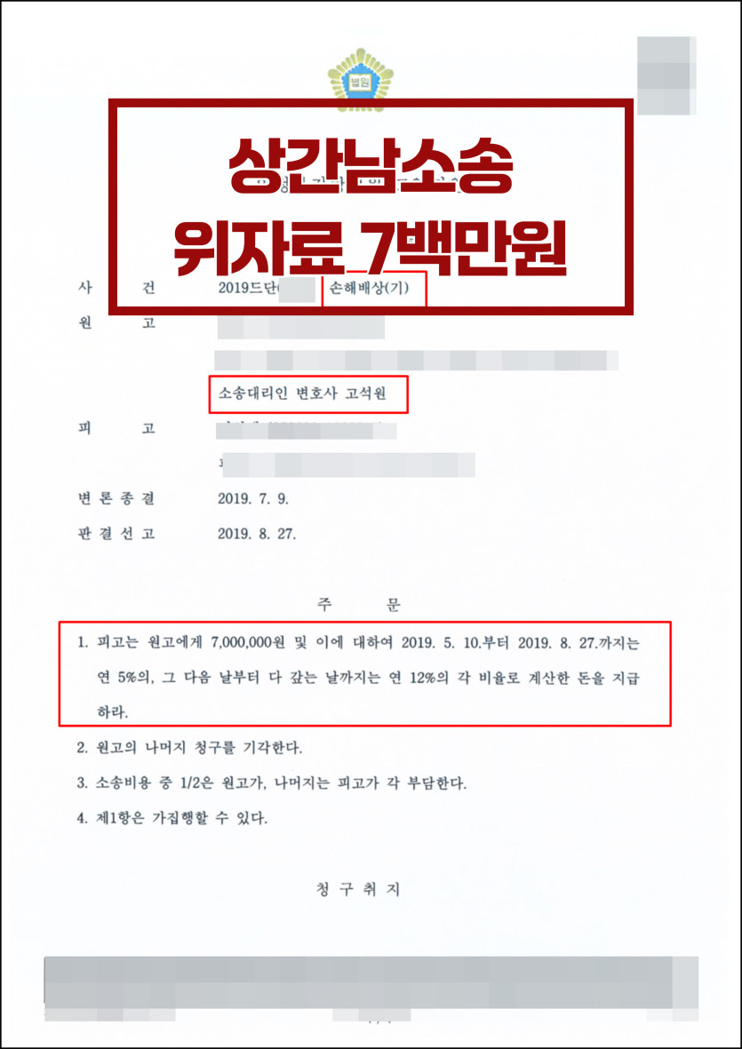 [상간남소송] 1회 외도 위자료 7백만원 인정 사례
