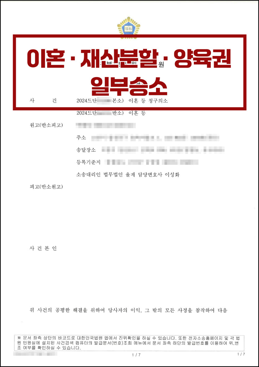 [이혼·재산분할·양육권] 일부승소로 마무리한 사례