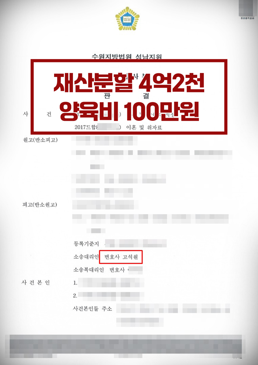 [이혼·재산분할]재산분할 4억2천만원ㅣ양육비 100만원 인정