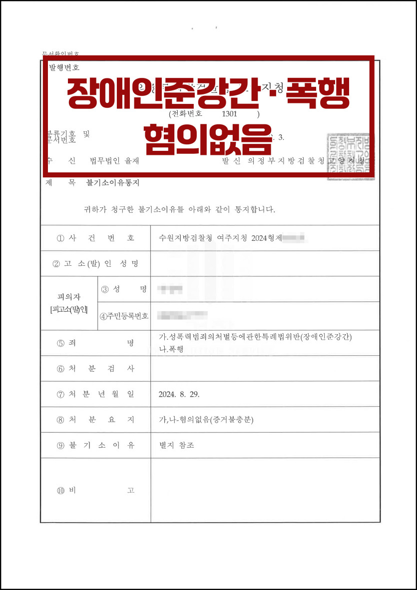 [장애인준강간·폭행] 무속인 의뢰인 검찰 단계 '혐의없음'으로 방어한 사례