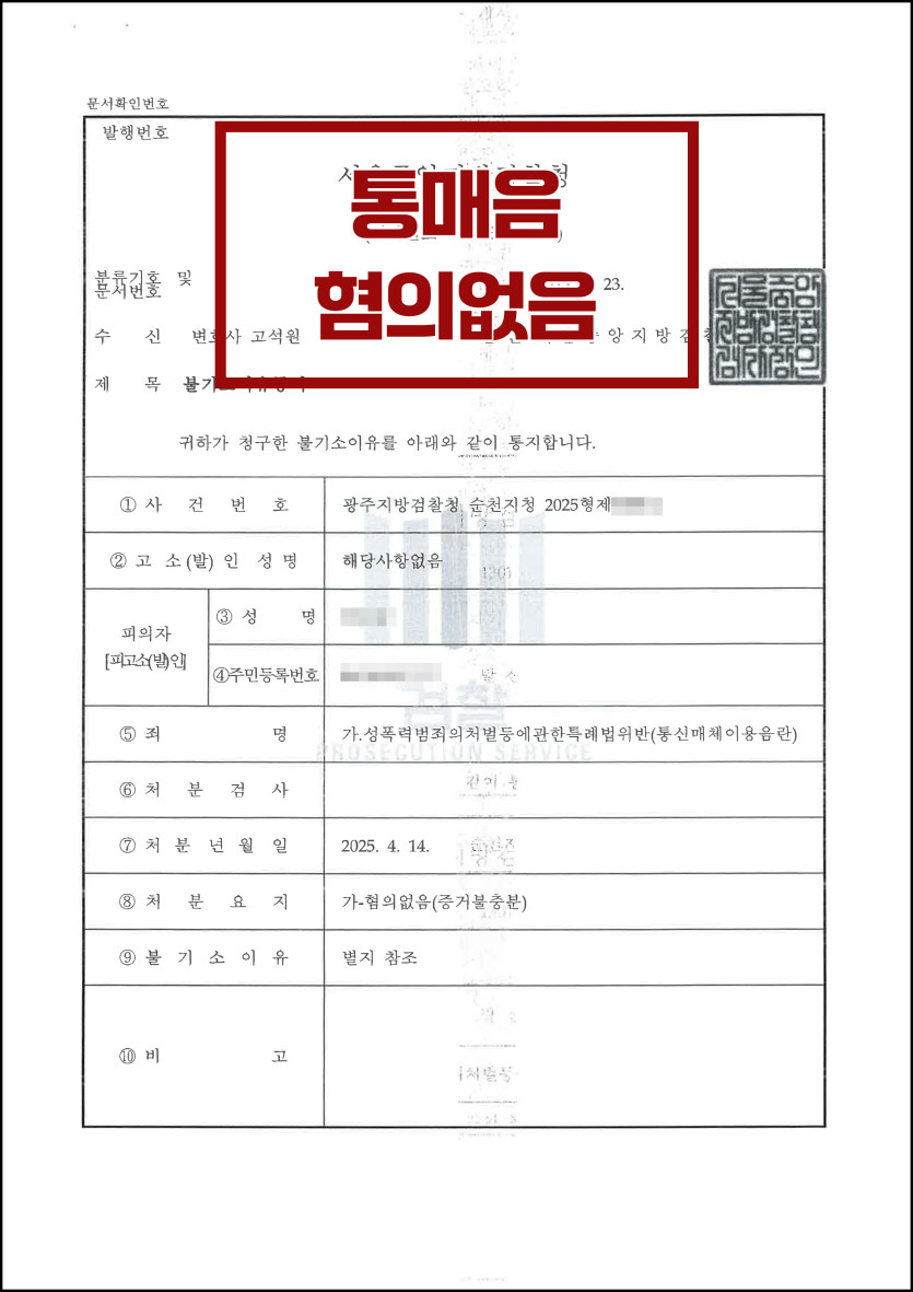 [통신매체이용음란] 통매음 검찰 단계 '혐의없음'으로 방어한 사례