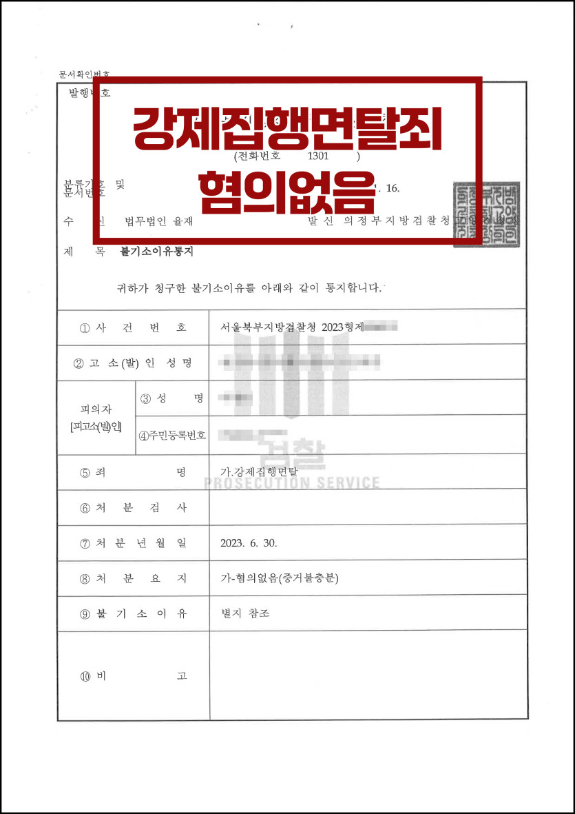 [강제집행면탈] 검찰 단계 '혐의없음'으로 방어한 사례