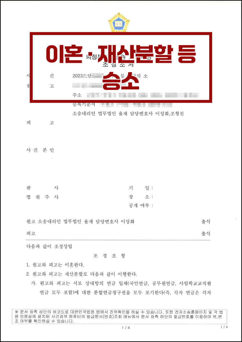 [이혼·재산분할·양육비 등 청구] 전부승소로 마무리한 사례