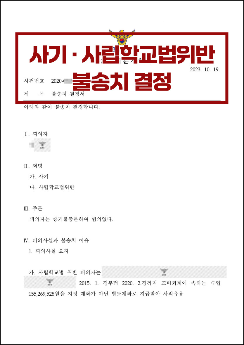 [사기·사립학교법 위반] 경찰 단계 '불송치 결정'으로 방어한 사례