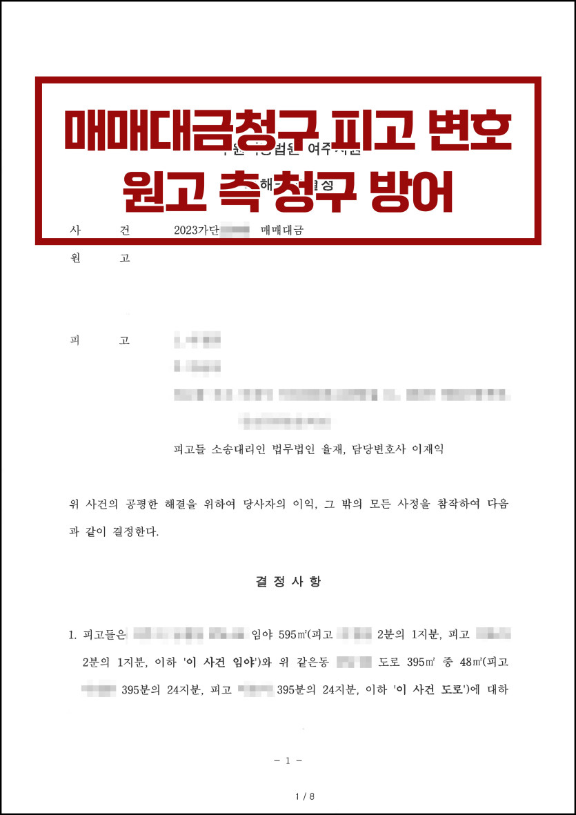[부동산 매매대금 청구 피고 변호] 원고 측 청구 방어 사례