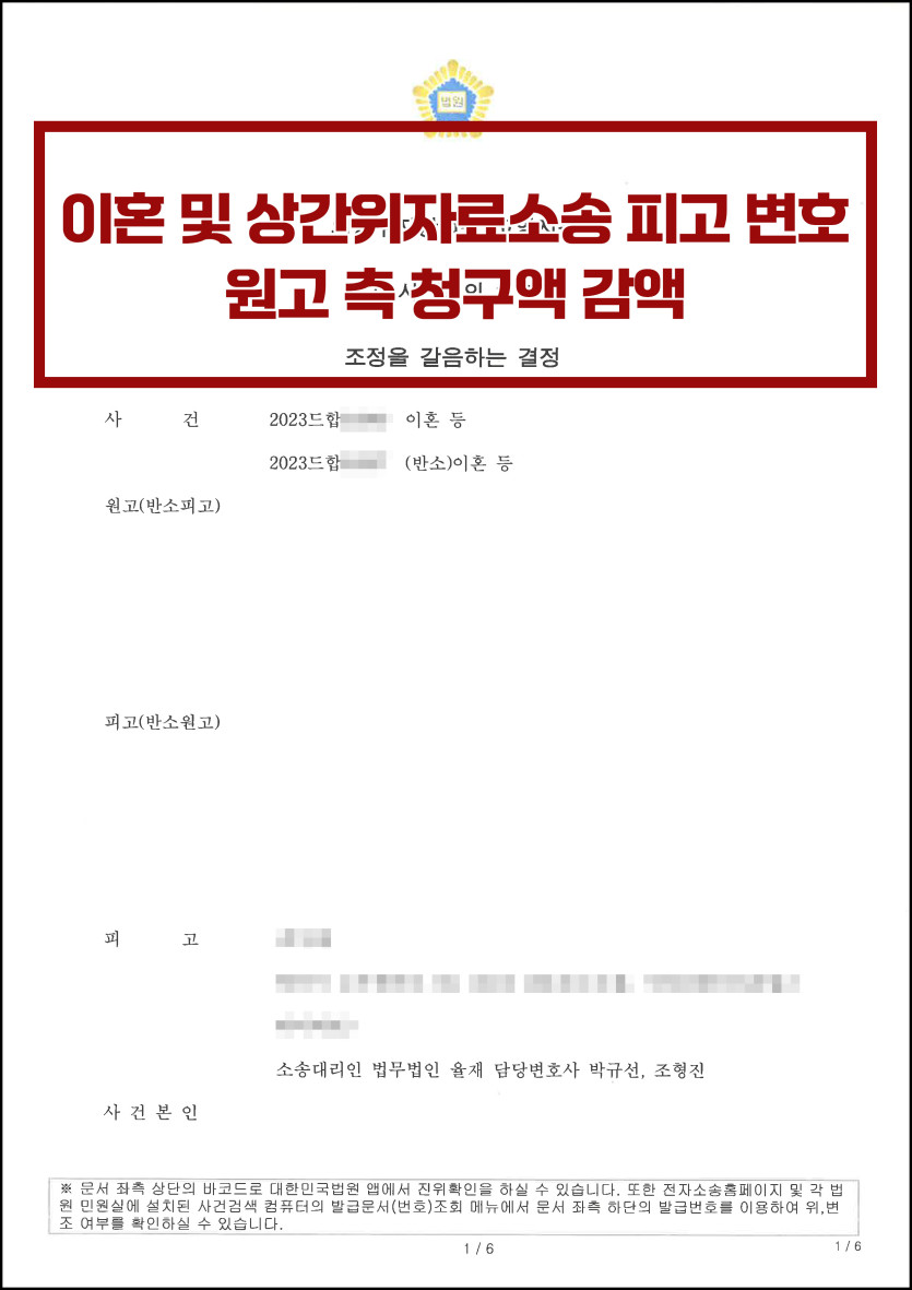 [상간남 위자료 청구 소송 피고 변호] 원고 측 청구액 감액 사례