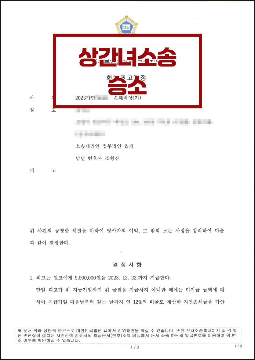 3. 사건의 신속한 종결을 원하는 의뢰인을 위해 피고 측과 협의하여 화해권고제도 적극 활용