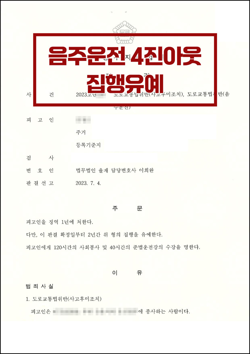 [음주4진·사고후미조치] 집행유예로 방어한 사례