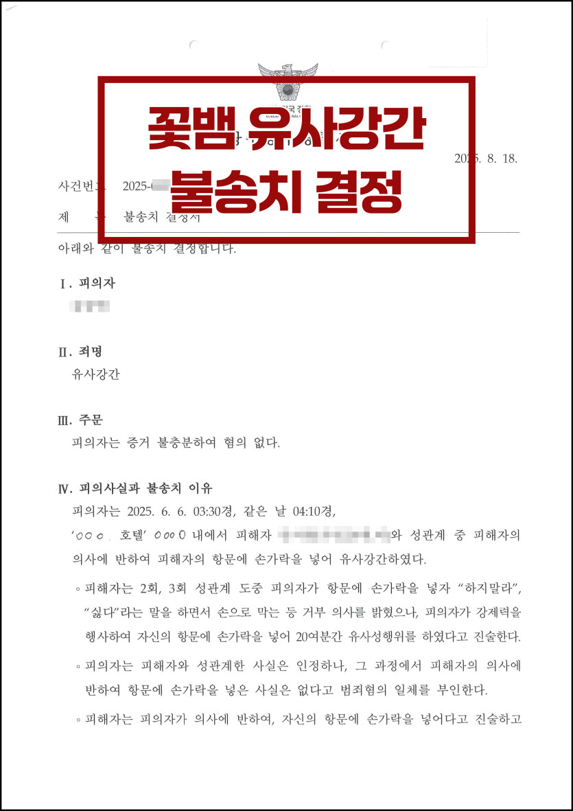 [꽃뱀 유사강간] 유사강간, 꽃뱀에게 당할 뻔한 의뢰인 불송치 결정 방어 사례